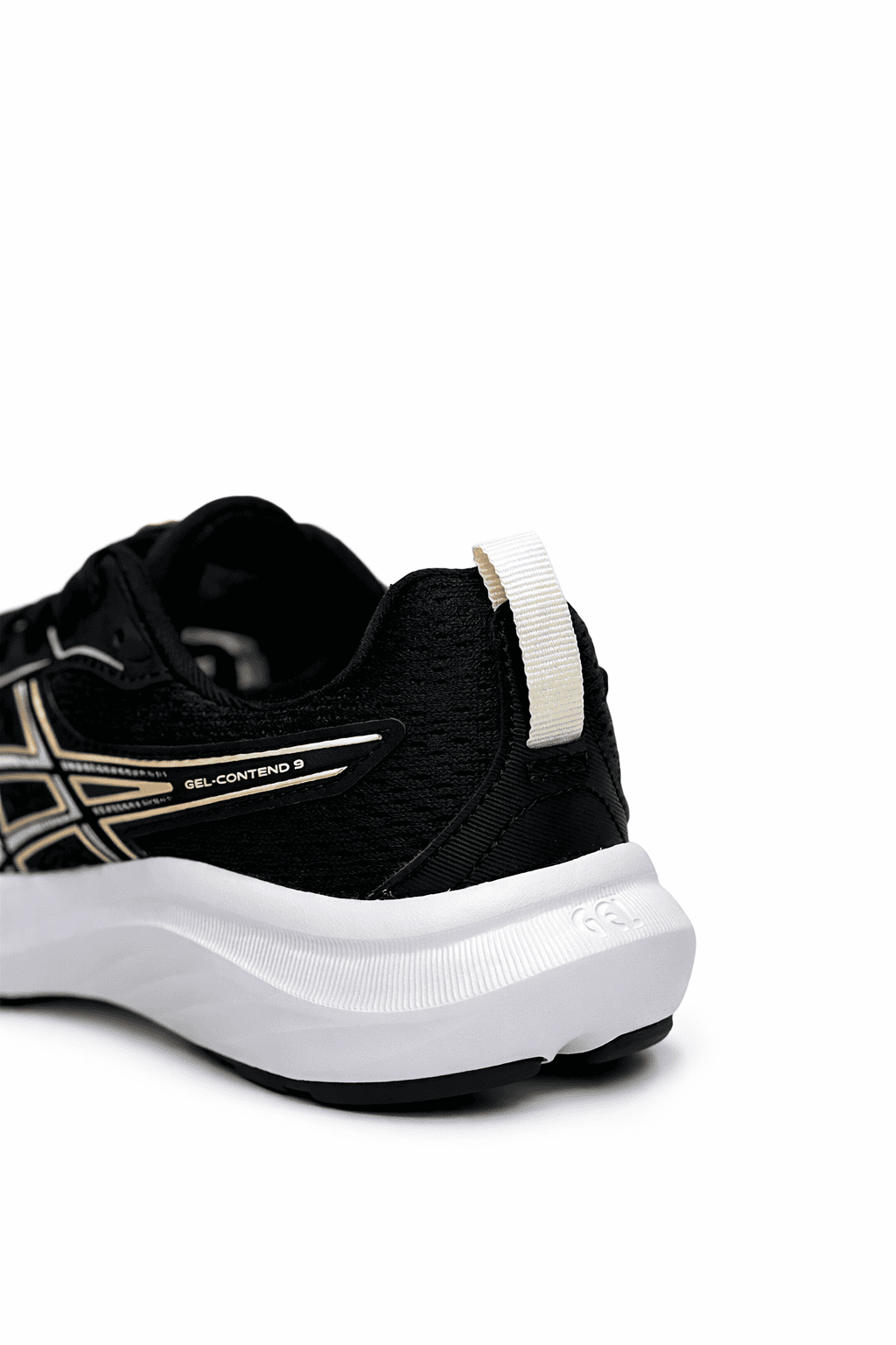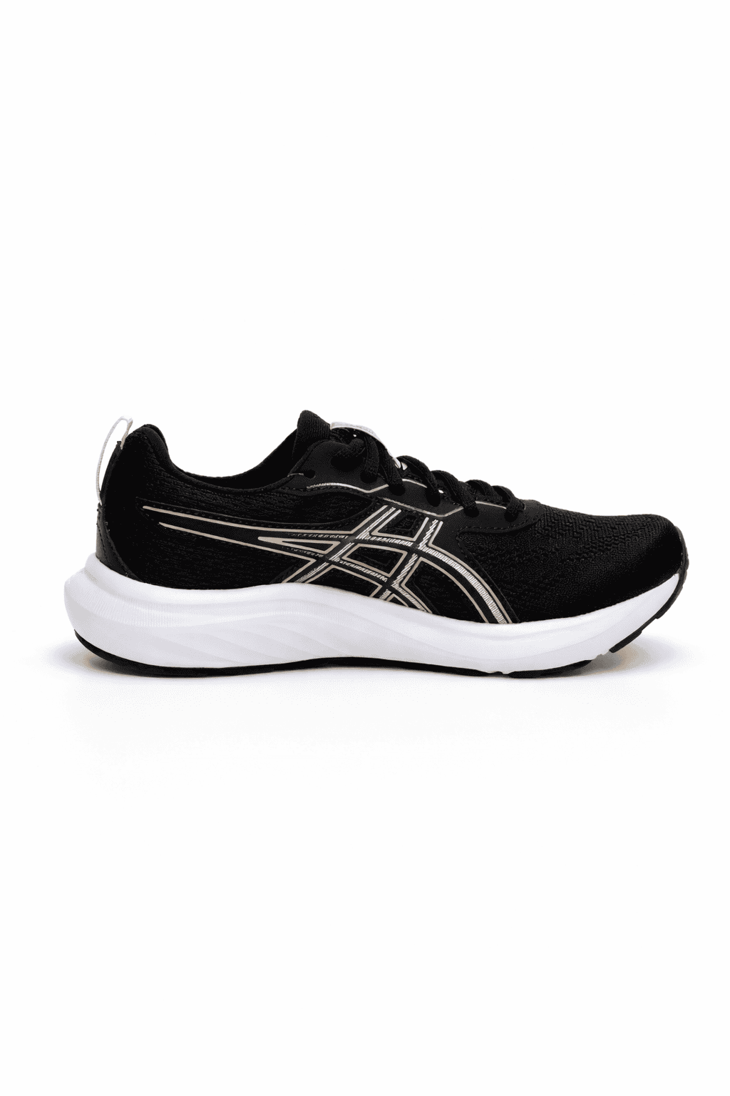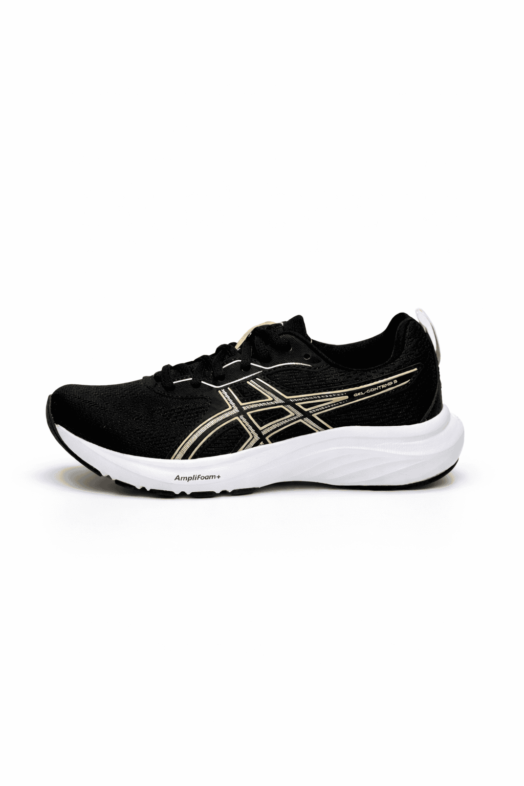 Zapatilla deportiva tipo running en color negro. Cuenta con una parte superior de malla transpirable que aporta ligereza y ventilación, junto con refuerzos laterales que mejoran la estabilidad del pie. Incorpora cordones negros y unas mediasuelas blancas con tecnología de amortiguación (amplifoam+) diseñada para ofrecer mayor comodidad en cada pisada. Ideal para enteramientos y uso diario.