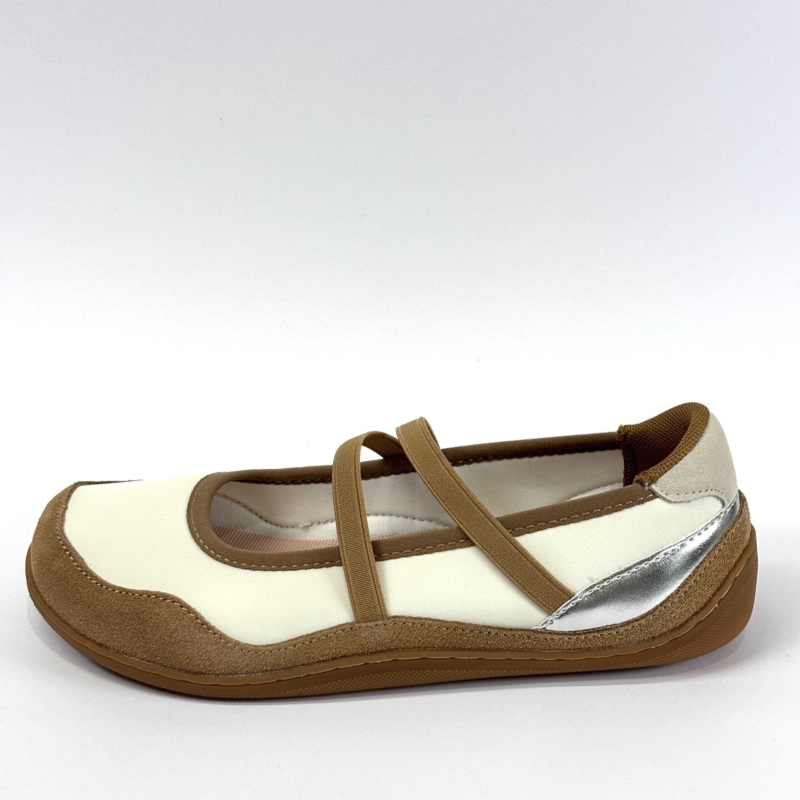 Bailarinas deportivas barefoot de piel con detalles metalizados. Cuentan con elástico en el empeine. Diseñadas siguiendo las tendencias minimalistas para garantizar la pisada natural.