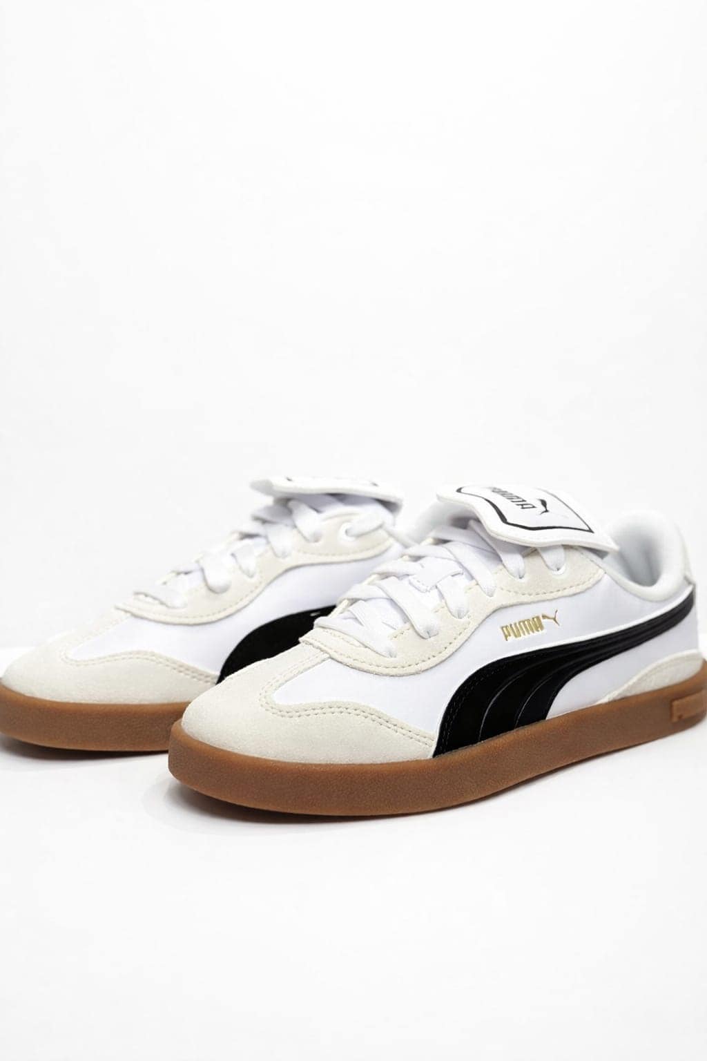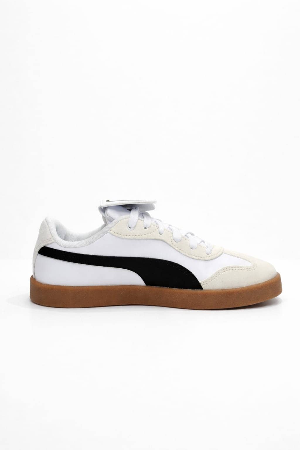 Zapatilla Puma de estilo casual con diseño clásico y urbano. Presenta parte superior en color blanco, combinada con la icónica franja lateral en negro, creando un contraste limpio y atemporal.